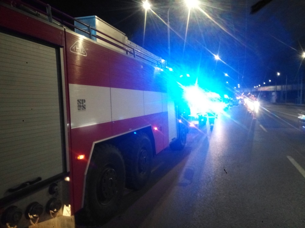 Požár výškové budovy se naštěstí nepotvrdil, jednalo se o požár nepoužívaného přilehlého skladu, který shořel v plném rozsahu.