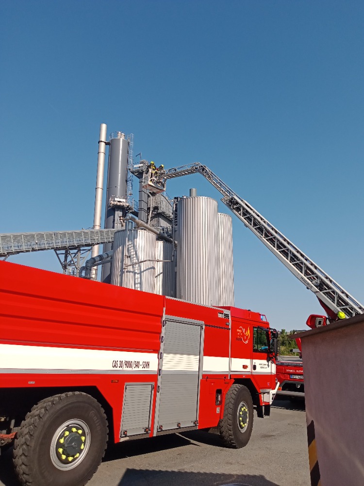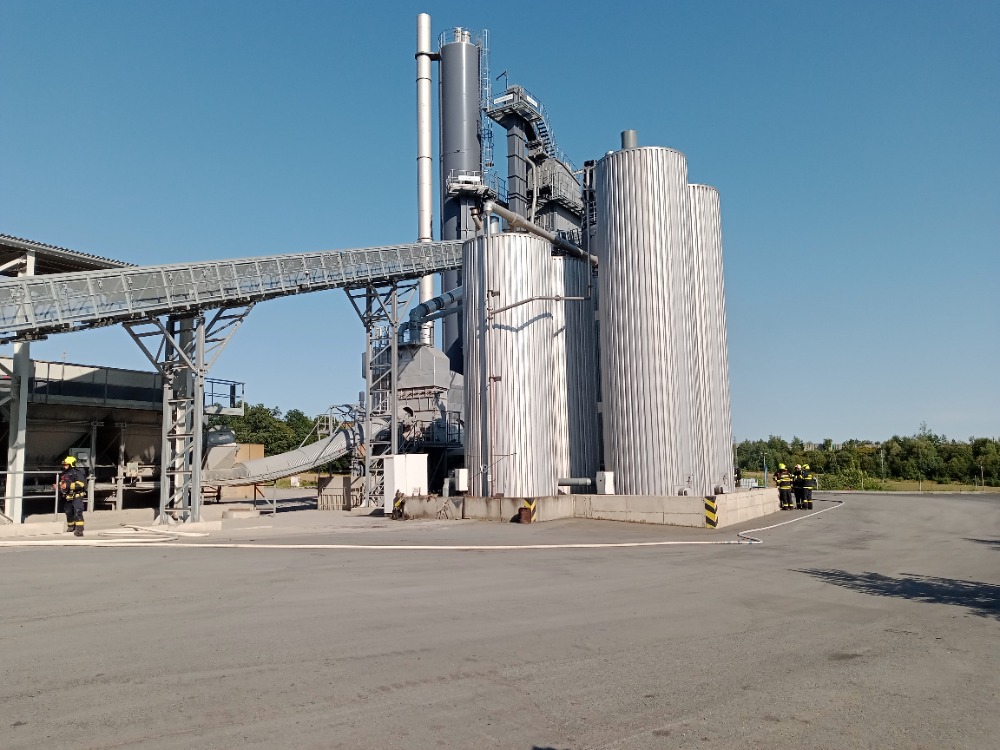 Zásah SDH - požár zásobníku asfaltu v obalovně v Koterově